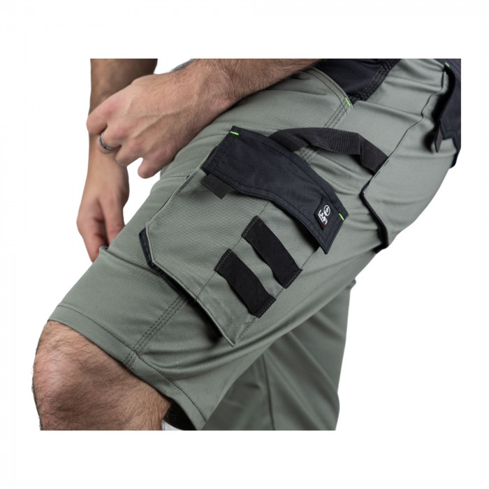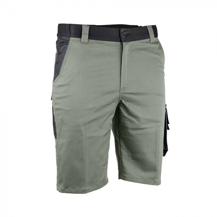 | En savoir plus | Bermuda de travail en coton/polyester pour homme avec poches italiennes, entrée de poche renforcée en Oxford - poche à soufflet, plaquée cuisse gauche, avec rabat fermé par bande auto-agrippante - système porte outils - deux poches dos à soufflet (dont une avec rabat), fermées par bandes auto-agrippantes.