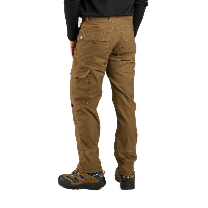 Lire l'avis| En savoir plus | Pantalon de travail avec poches genouillères ton sur ton en coton majoritaire pour homme avec poche sécurité avec fermeture nylon plastique, poche téléphone, poche cuisse avec rabat et soufflets contrastés, deux poches arrière avec rabat en tissu contrasté (dont une ouverte), double poche mètre.
