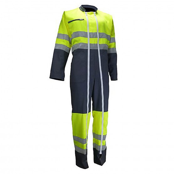 | En savoir plus | Combinaison haute visibilité vision II en tissu fluorescent : 80% polyester 20% coton. contraste : 60% coton 40% polyester pour homme, col officier, avec une poche poitrine droite, une poche dos, deux poches basses et une poche mètre. |