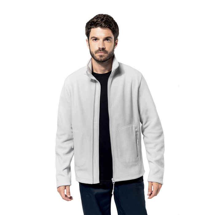 | En savoir plus | Veste polaire manches longues en 100% polyester recyclé pour femme ou homme, avec deux poches zippées sur le côté. Les plus du produit :
