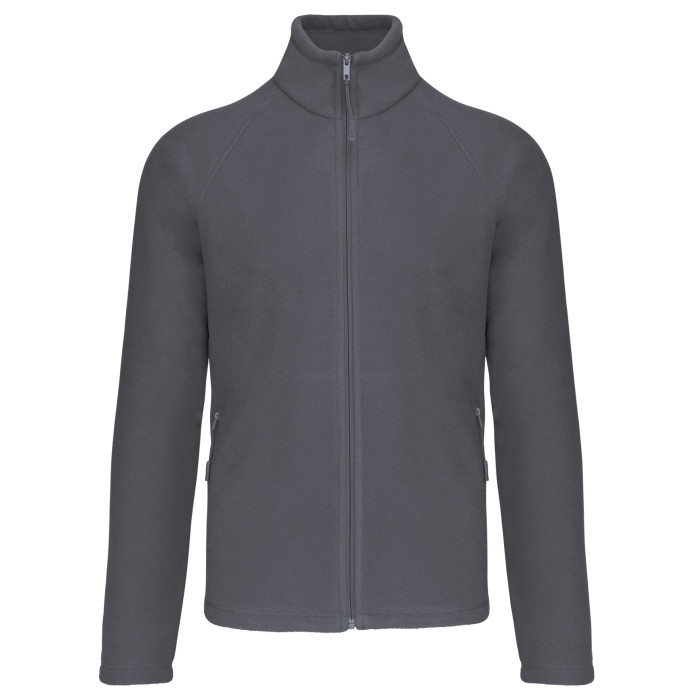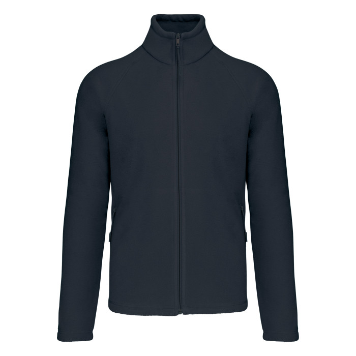 En savoir plus | Veste manches longues en polyester pour homme, col cheminée, avec deux poches zippées sur le devant et deux poches intérieures.