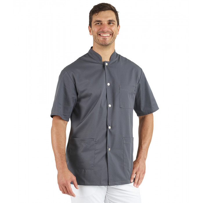 Lire les 7 avis| En savoir plus | Veste col officier manches courtes en polyester/coton pour femme ou homme, col officier, avec deux poches basses et une poche poitrine.