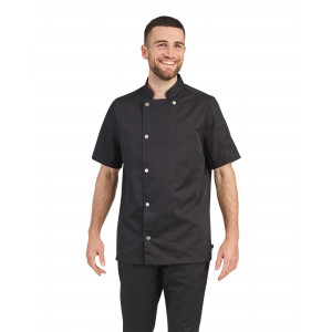 Veste de cuisine manches longues aux poignets mousquetaires en polyester/coton pour femme ou homme, col officier, avec une poche stylo sur la manche gauche et une poche intérieure. Cette veste de cuisine est très légère à porter et vous laisse libre de vos mouvements pour un maximum de confort. Existe également en manches courtes modèle Paul